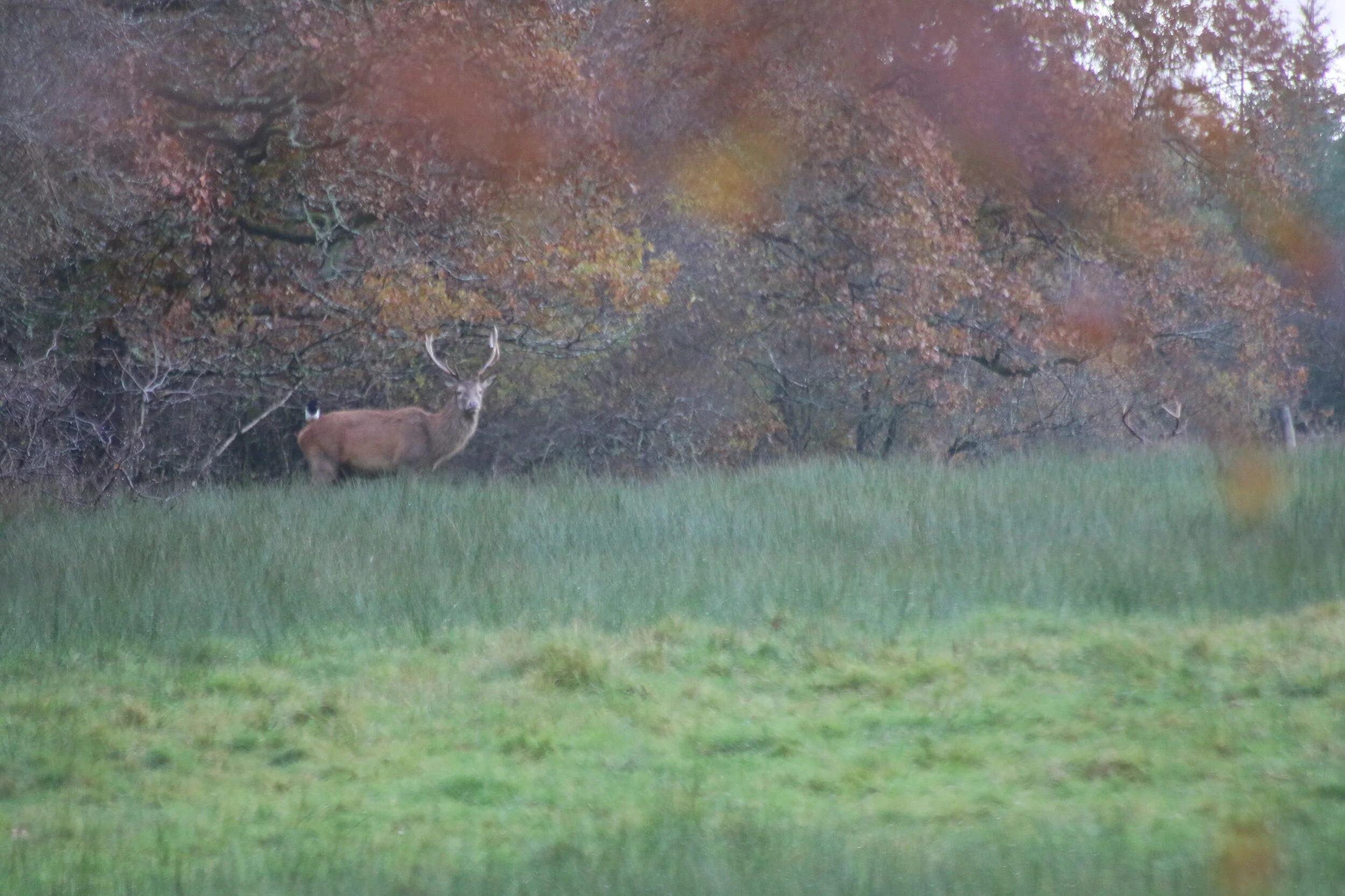 A Stag with the photo taken in early Nov. If you look on the right hand side the antlers of a larger Stag are visible.